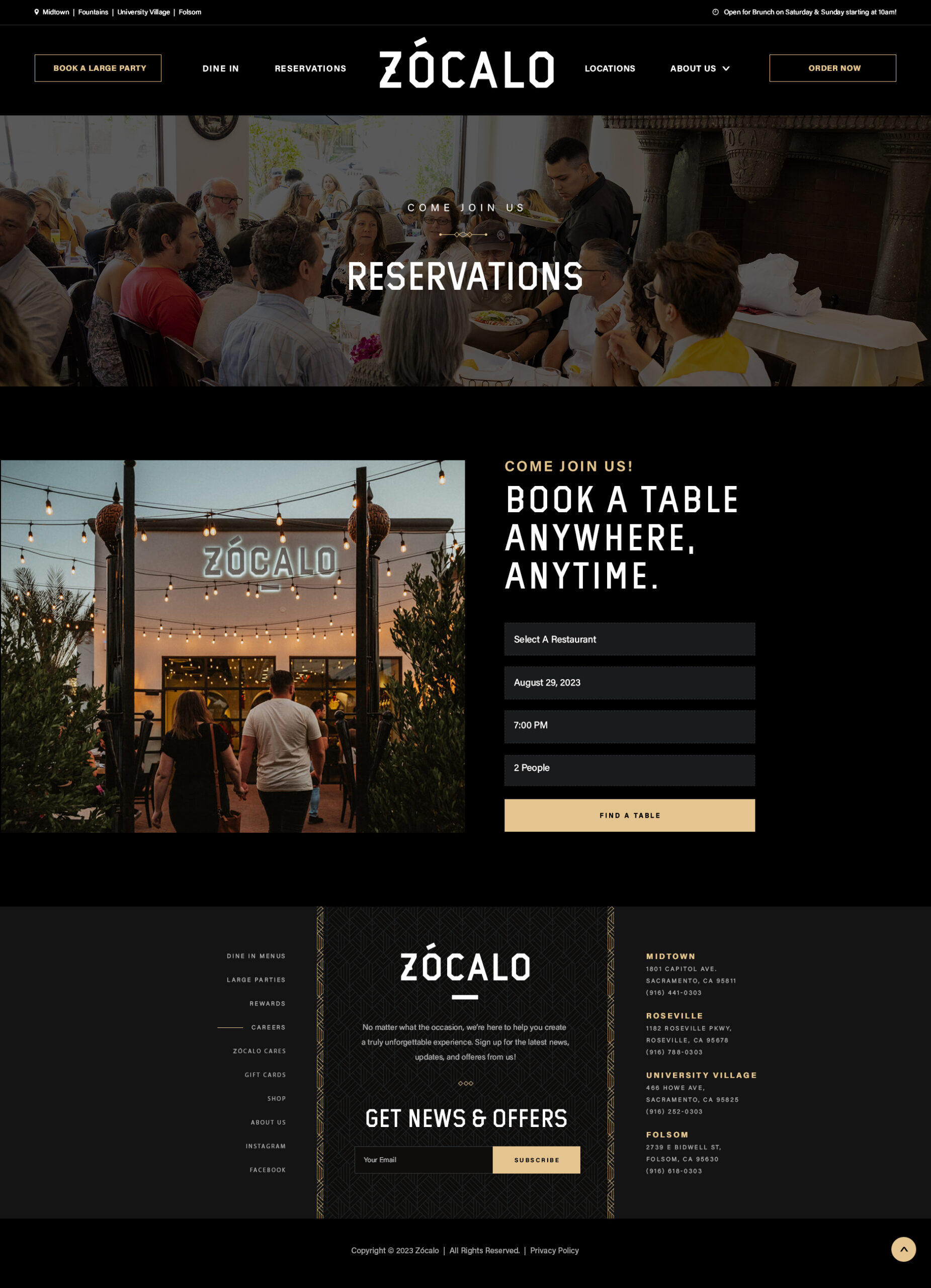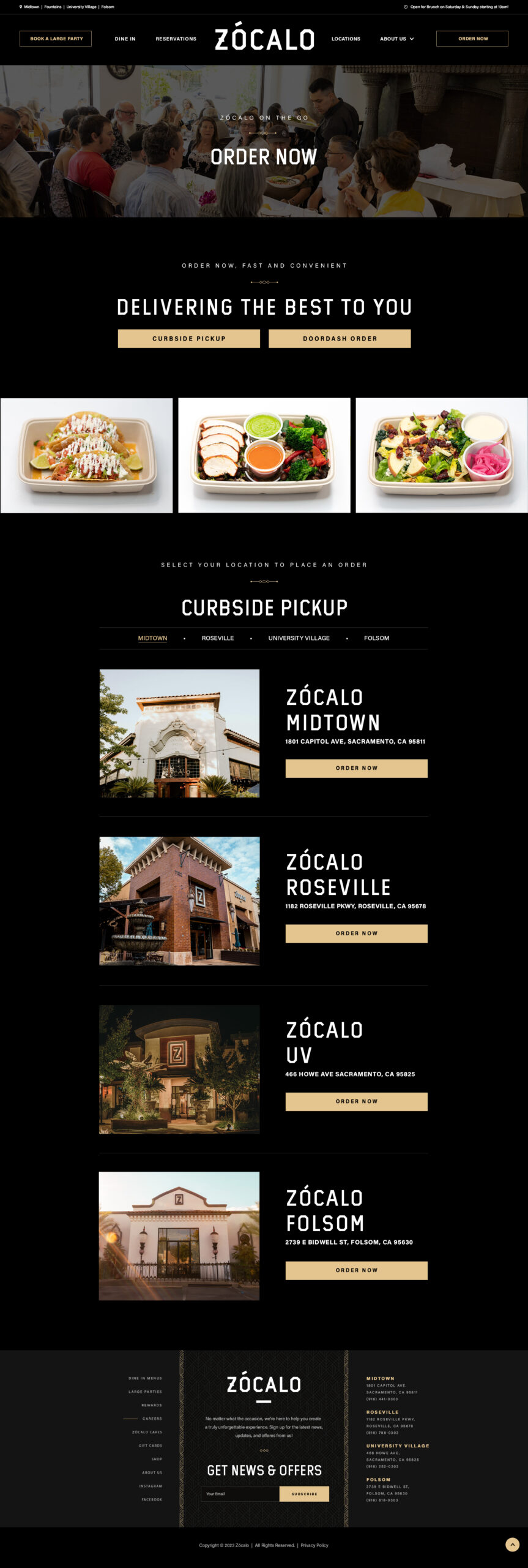 With the refreshed brand in hand, we rolled out the new logo across all marketing materials, menus, signage, and promotional collateral, ensuring consistency and storytelling at every touchpoint. We also designed and built a new website for Zócalo that delivers a dark, sophisticated aesthetic with modern usability, improved accessibility, and an engaging user experience.